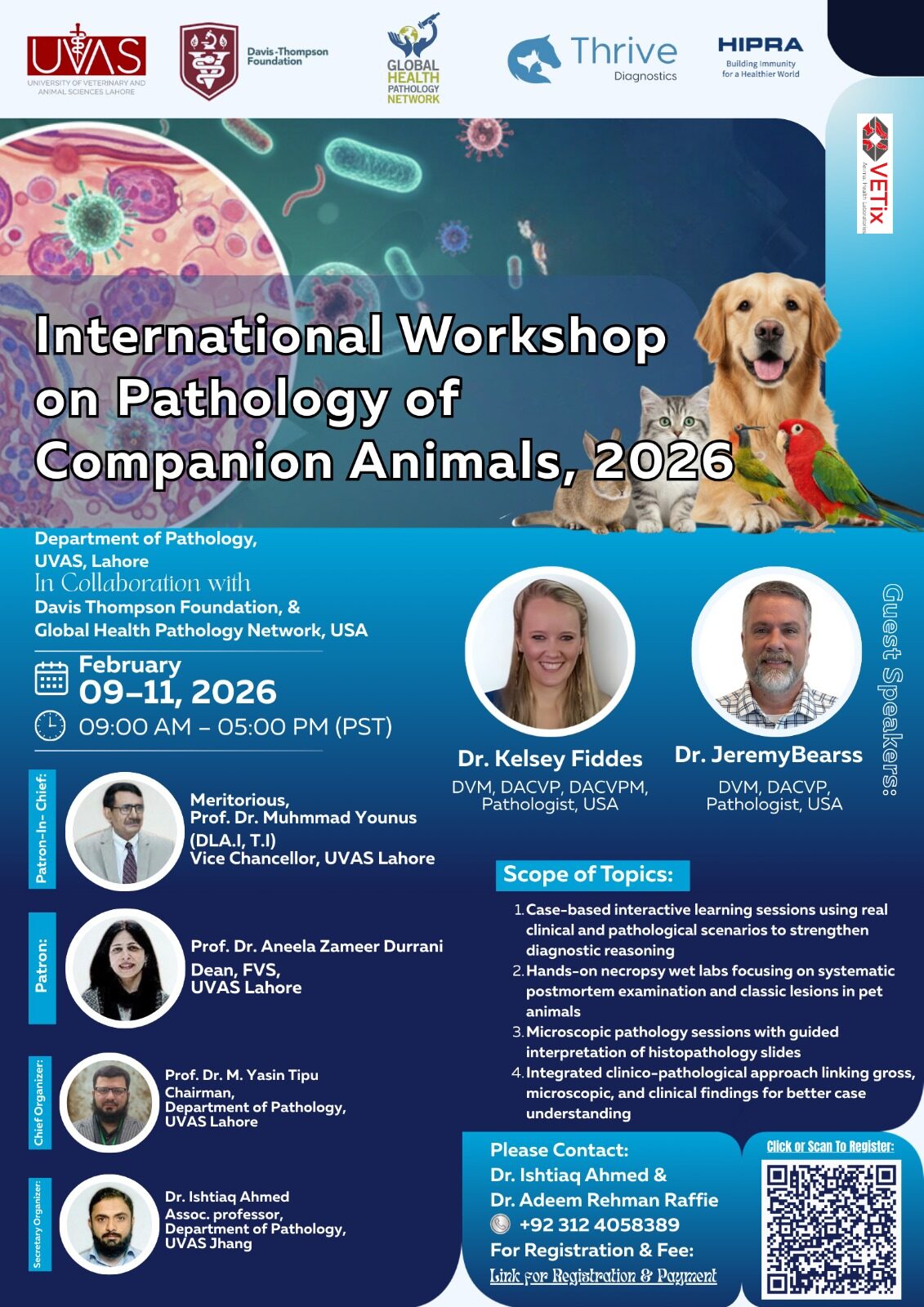 A unique feature of this workshop is the participation of two eminent veterinary pathologists from the United States as international resource persons, who will share their expertise, global perspectives, and best practices in companion animal diagnostic pathology. The program emphasizes practical application of diagnostic pathology to enhance clinical decision-making, laboratory utilization, and overall patient outcomes.