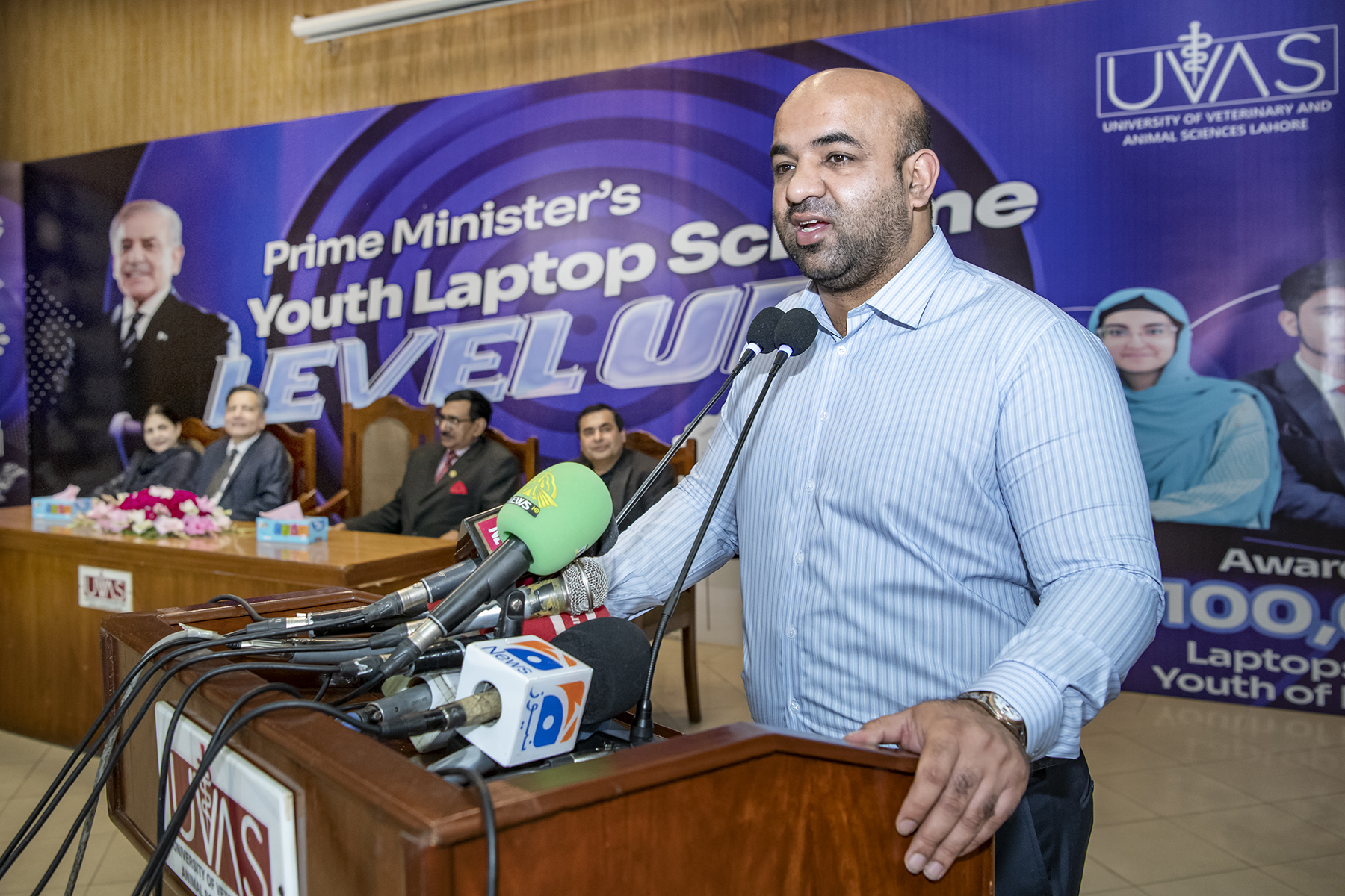 Education Minister Punjab Rana Sikandar Hayat presided over the laptop distribution ceremony and he along with UVAS Vice-Chancellor Meritorious Prof Dr Muhammad Younus (DLA.I, T.I) distributed the laptops among the students, who were selected on merit from different departments and campuses of the UVAS.