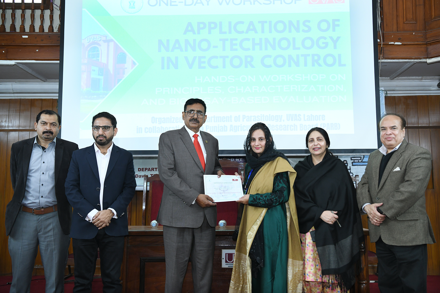 Vice-Chancellor Meritorious Prof Dr Muhammad Younus (DLA.I, T.I) presided over the concluding session of the workshop and distributed certificates among participants while Dean Faculty of Veterinary Science Prof Dr Aneela Zameer Durrani, Chairman Department of Parasitology Prof Dr Kamran Ashraf, Prof Dr Mian Abdul Hafeez, Dr Muhammad Oneeb and a number of professionals/parasitologists, vector control specialists, researchers, academicians experts from different public & private institutions/organizations were present.