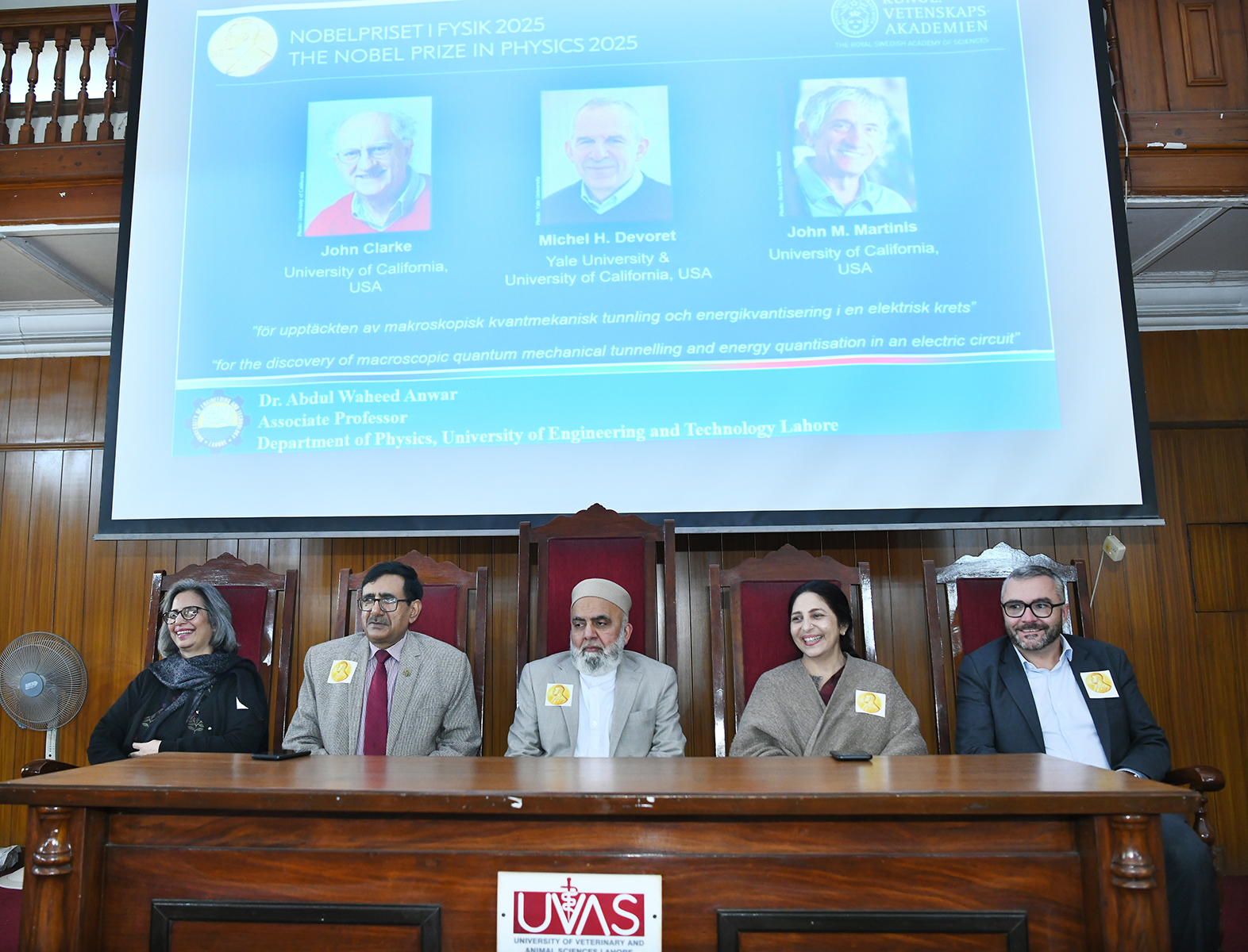 Earlier, Dr Haroon Akbar gave presentation on physiology/medicine nobel 2025. He talked about Simon Sakaguchi regulatory T cells, support T cells, immunologic self-tolerance and Dr Qasim Raza spoke about Nobel Prize in chemistry 2025, metal-organic frameworks building the future of materials while Dr Abdul Waheed Anwar talked on physics.