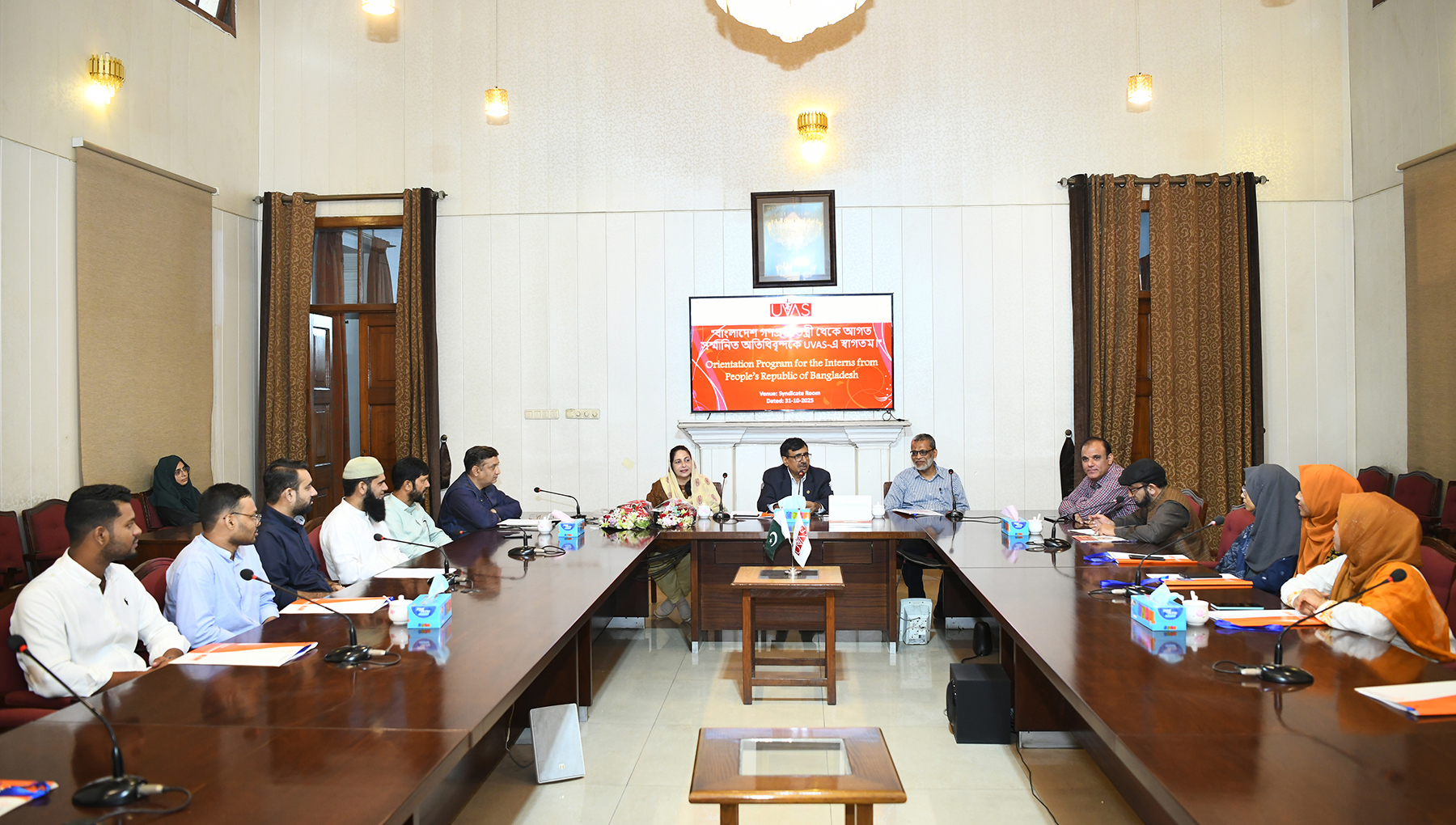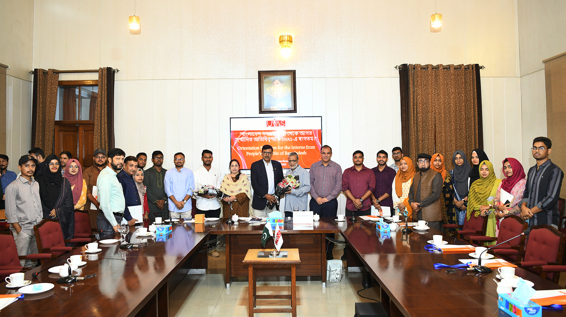 Vice-Chancellor Meritorious Prof Dr Muhammad Younus (DLA.I, T.I) presided over the orientation ceremony, Director Office of Research Innovation & Commercialization/Former Dean Veterinary Science (CVASU) Prof Dr Abdul Ahad, Dean Faculty of Veterinary Science Prof Dr Aneela Zameer Durrani, Focal Person Internship Programe Prof Dr Arfan Ahmad and UVAS senior faculty members & students were present in the ceremony.