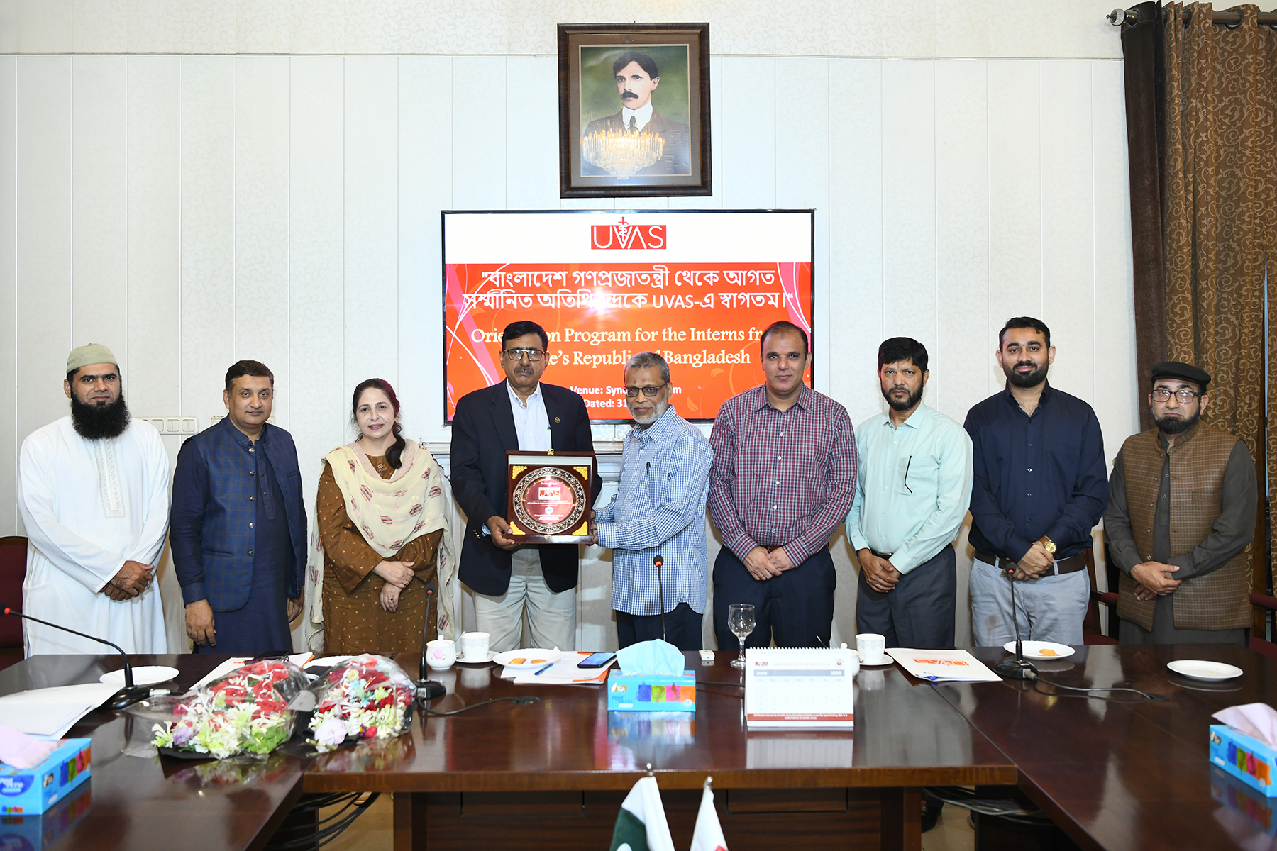Speaking on the occasion, Prof Dr Muhammad Younus said that during internship period students will learn maximum theoretical & practical knowledge from the experts of UVAS. He said UVAS will also organize their dairy farm, poultry industry, others campuses of UVAS & its labs visits for their practical exposure and also organize extra-curricular sports activities as well as historical places visits to make their stay memorable. Earlier he also welcomed them in UVAS came from brother Islamic country which was the part of Pakistan in the past, he added.