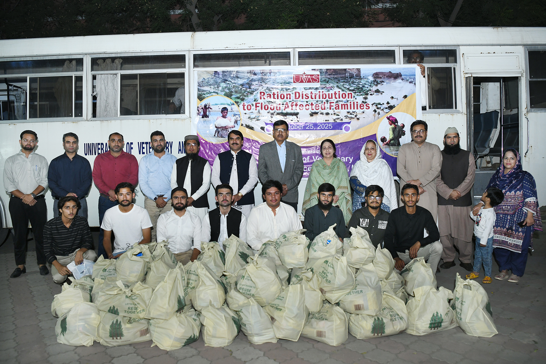 While addressing the flood relief goods distribution ceremony, Prof Dr Muhammad Younus said that livestock is the only source of livelihood for the population of rural areas and this year due to destruction by heavy floods the livestock farming community is facing economic losses. He thanked all the donors who showed trust in UVAS.