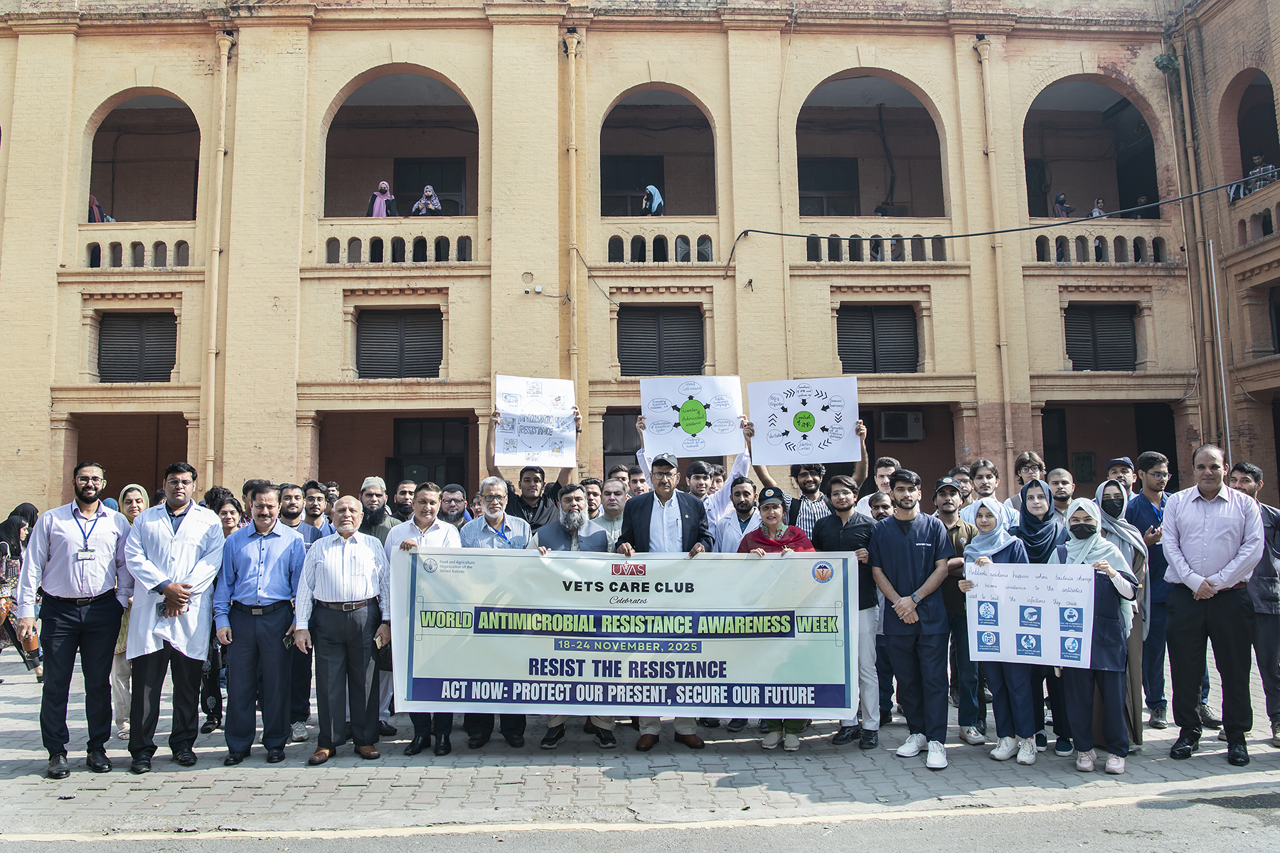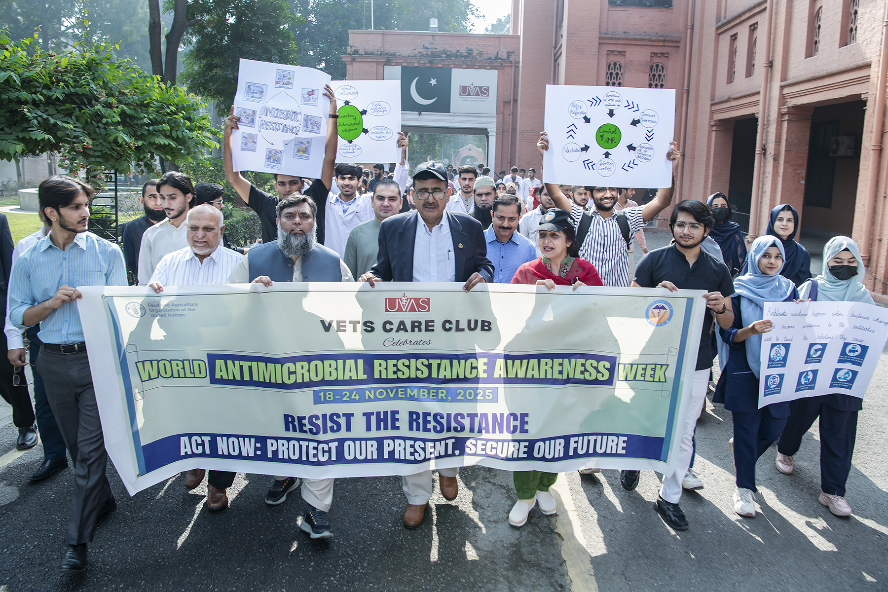 LAHORE (03-11-25): Institute of Microbiology (IOM) of the University of Veterinary and Animal Sciences (UVAS) Lahore arranged a walk to observe “World Antimicrobial Resistance Awareness Week” with the theme of “Act Now: Protect Our Present, Secure Our Future” here at City Campus Lahore.
