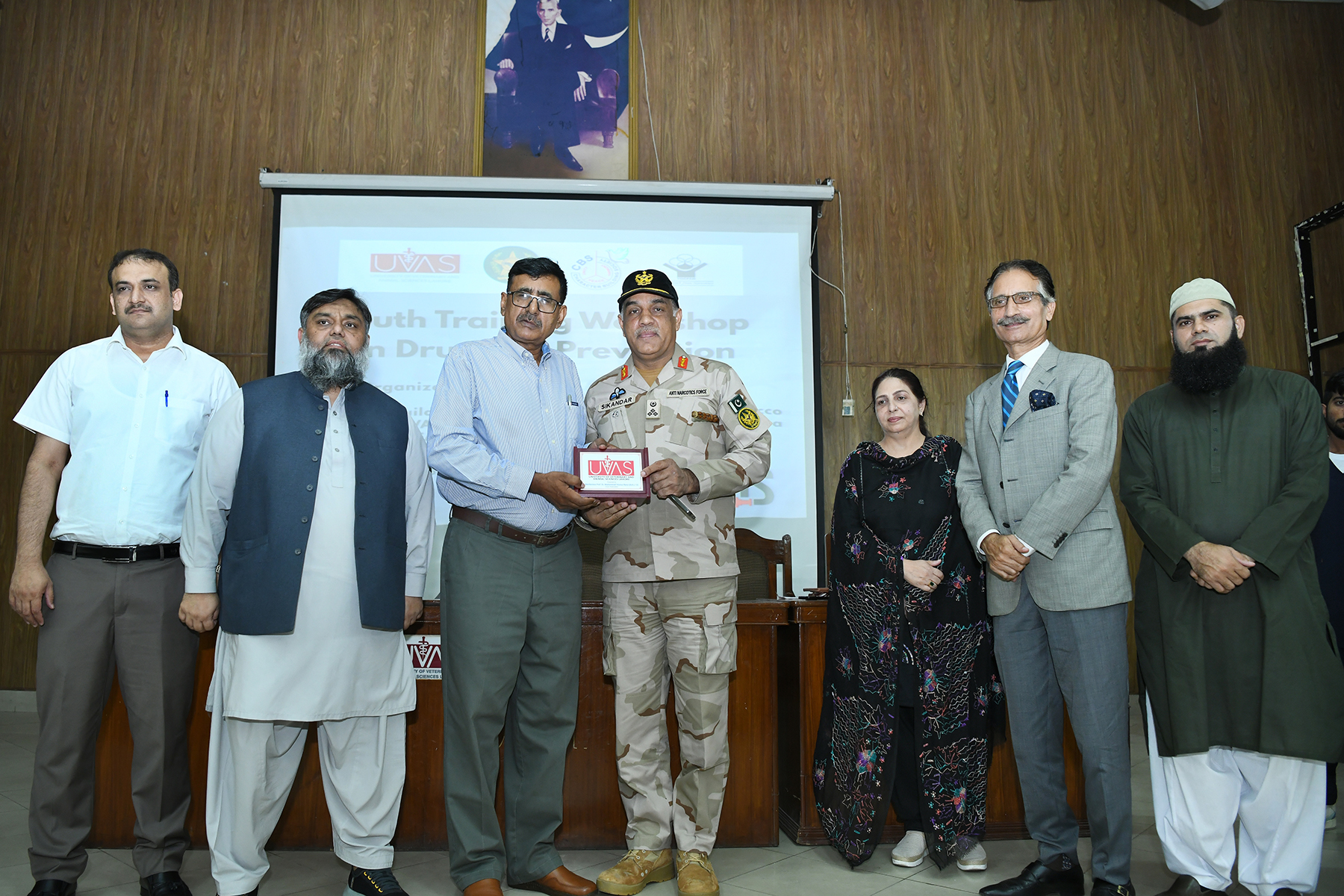 UVAS Vice-Chancellor Meritorious Prof Dr Muhammad Younus (DLA.I, T.I) presided over the concluding session of workshop while Regional Directorate Commander Anti-Narcotics Force Punjab Brig. Sikandar Hayat Chaudhary was the Guest of Honor. Consultant/Expert, Anti-Drugs Narcotics Campaign & Master Trainer on Drug Syed Zulfiqar Hussain, Psychiatrist/Senior Registrar Mayo Hospital Lahore Dr Shoiab Zafar, Dean Faculty of Veterinary Science Prof Dr Aneela Zameer Durrani, Dr Muhammad Asad Ali and number of faculty members and students were present.